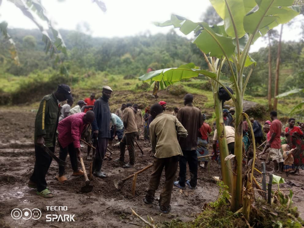 Les communautés riveraines du parc de Kibira en train de préparer la terre pour la production des pépinières d’arbres (Photo: Eliane Nduwimana)