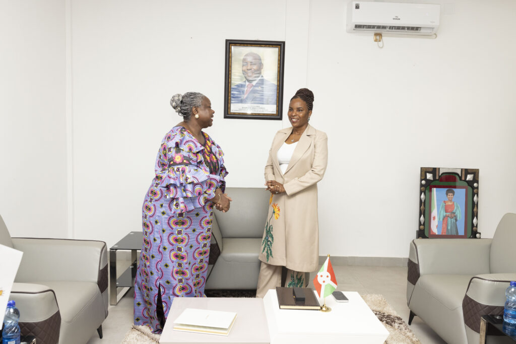 La Première dame du Burundi, Angeline Ndayishimiye a reçu en audience le lundi 20 octobre 2025 au siège de l’OPDD (Office de la Première dame pour le développement) l’ambassadeur extraordinaire et plénipotentiaire du Gabon au Burundi, Joséphine Patricia Ntyam Ehya, avec résidence à Kinshasa en République démocratique du Congo. Les projets sociaux exercés par les Premières dames des deux pays ont fait l’objet de leurs échanges.